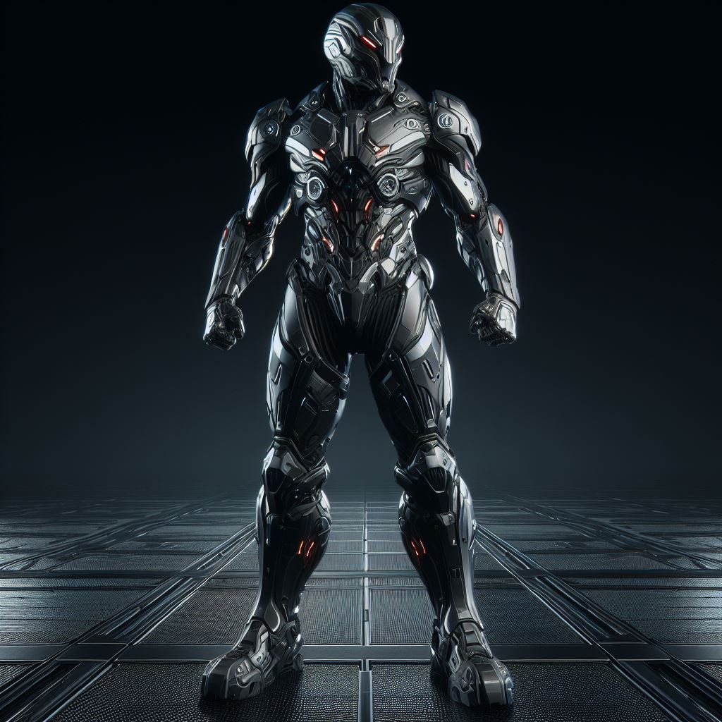 armor, armored, character, cyborg, dark, design, expression, fantasy, figure, futuristic, game, platform, pose, robot, sci-fi, serious, soldier, standing, suit, warrior
