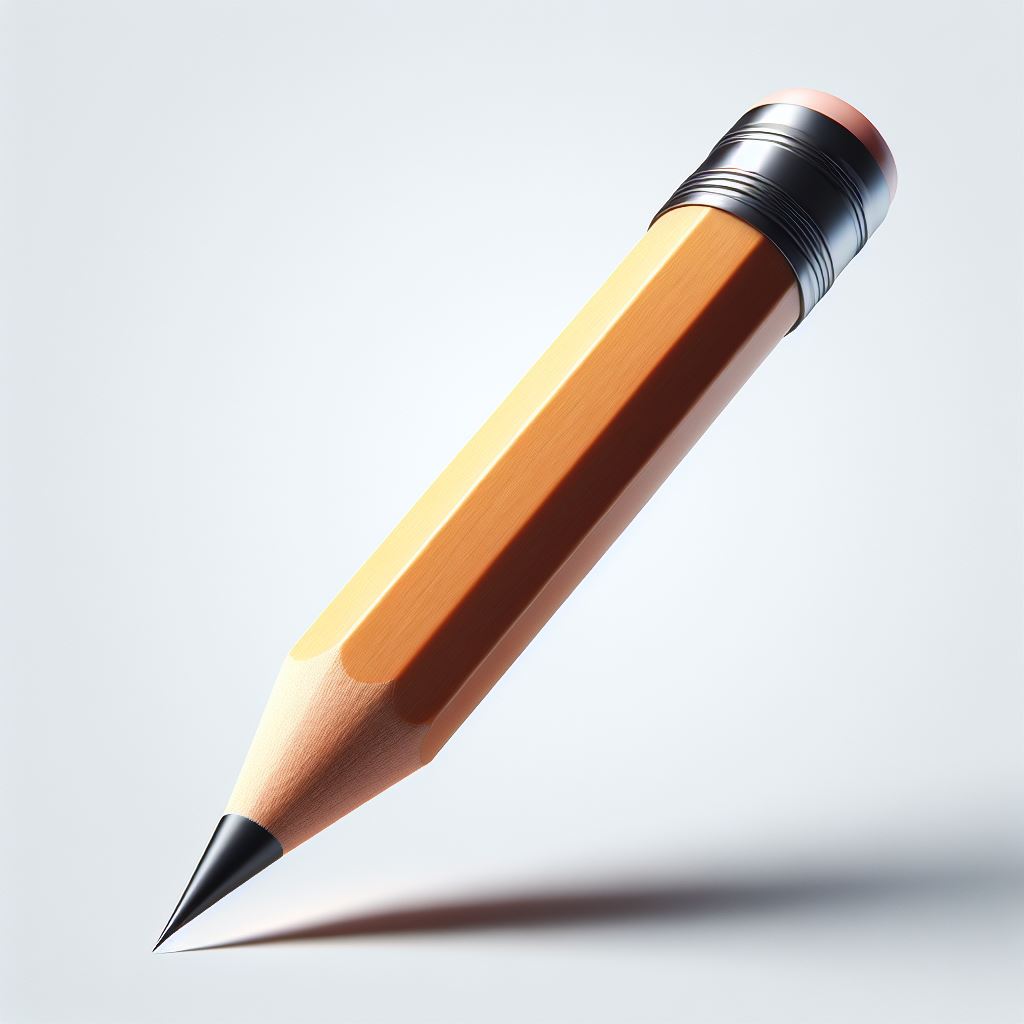 A yellow pencil rests on a white surface, its point facing down and ready to write.