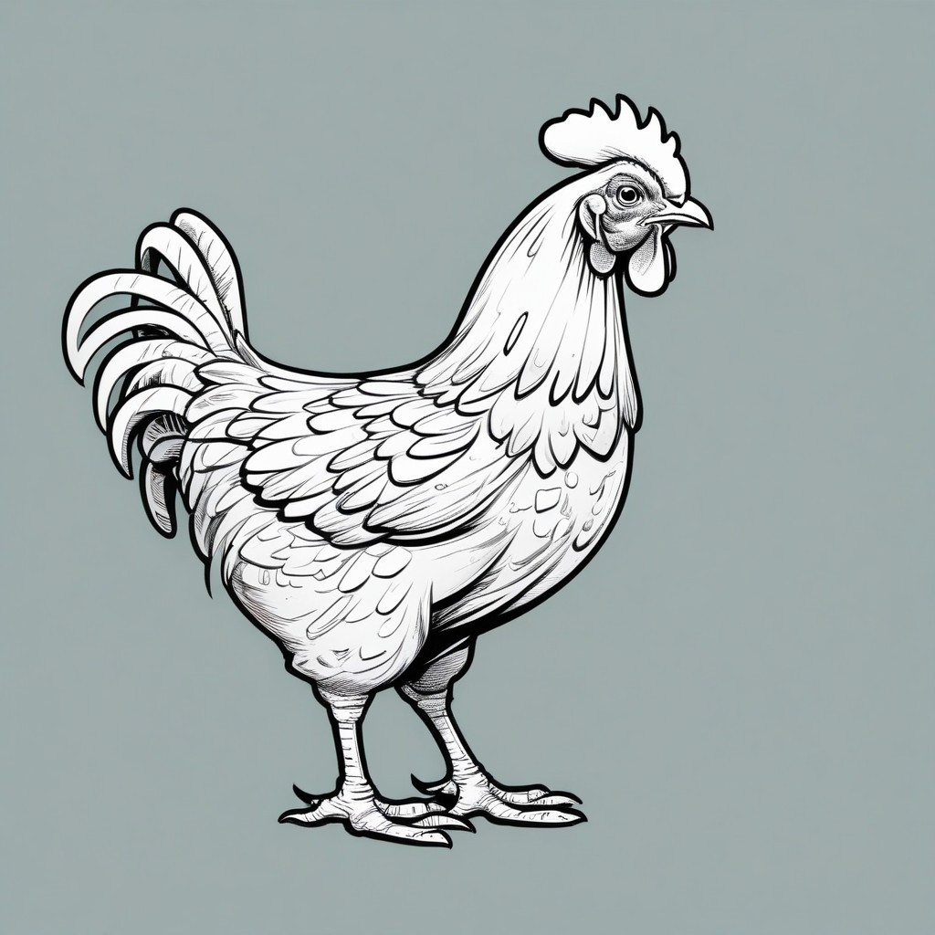 animal, art, beak, bird, chicken, comb, crest, drawing, farm, feathers, fowl, gray, illustration, legs, line, poultry, rooster, sketch, talons, wattle