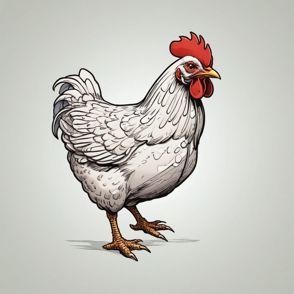 agriculture, animal, background, beak, bird, chicken, claws, comb, digital, farm, feathers, gray, illustration, legs, livestock, poultry, red, rooster, wattle, white