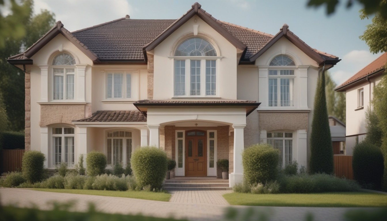 architecture, bushes, day, door, exterior, front, grass, greenery, home, house, landscape, lawn, porch, property, residential, suburban, sunlight, trees, walkway, white