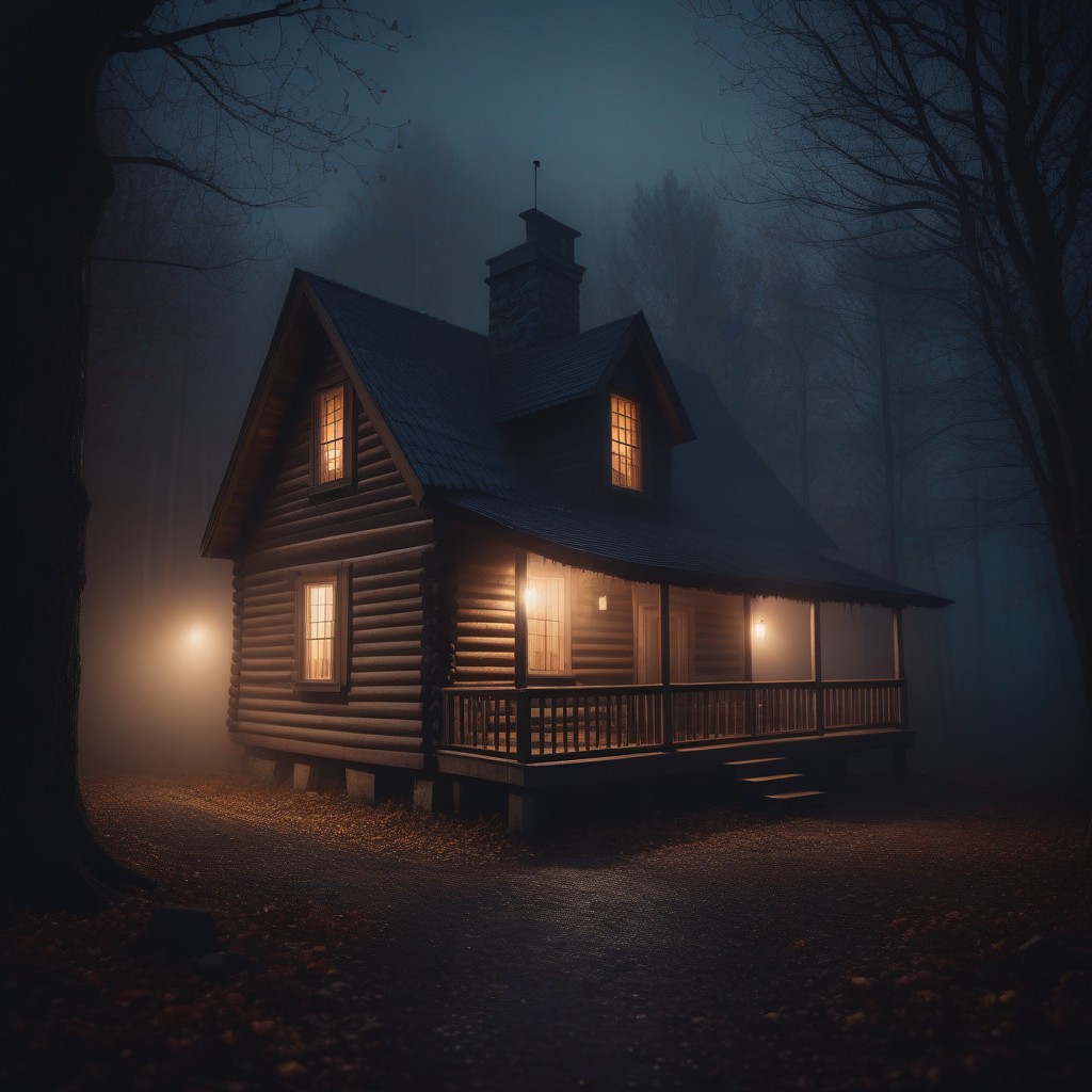 Foggy night cabin