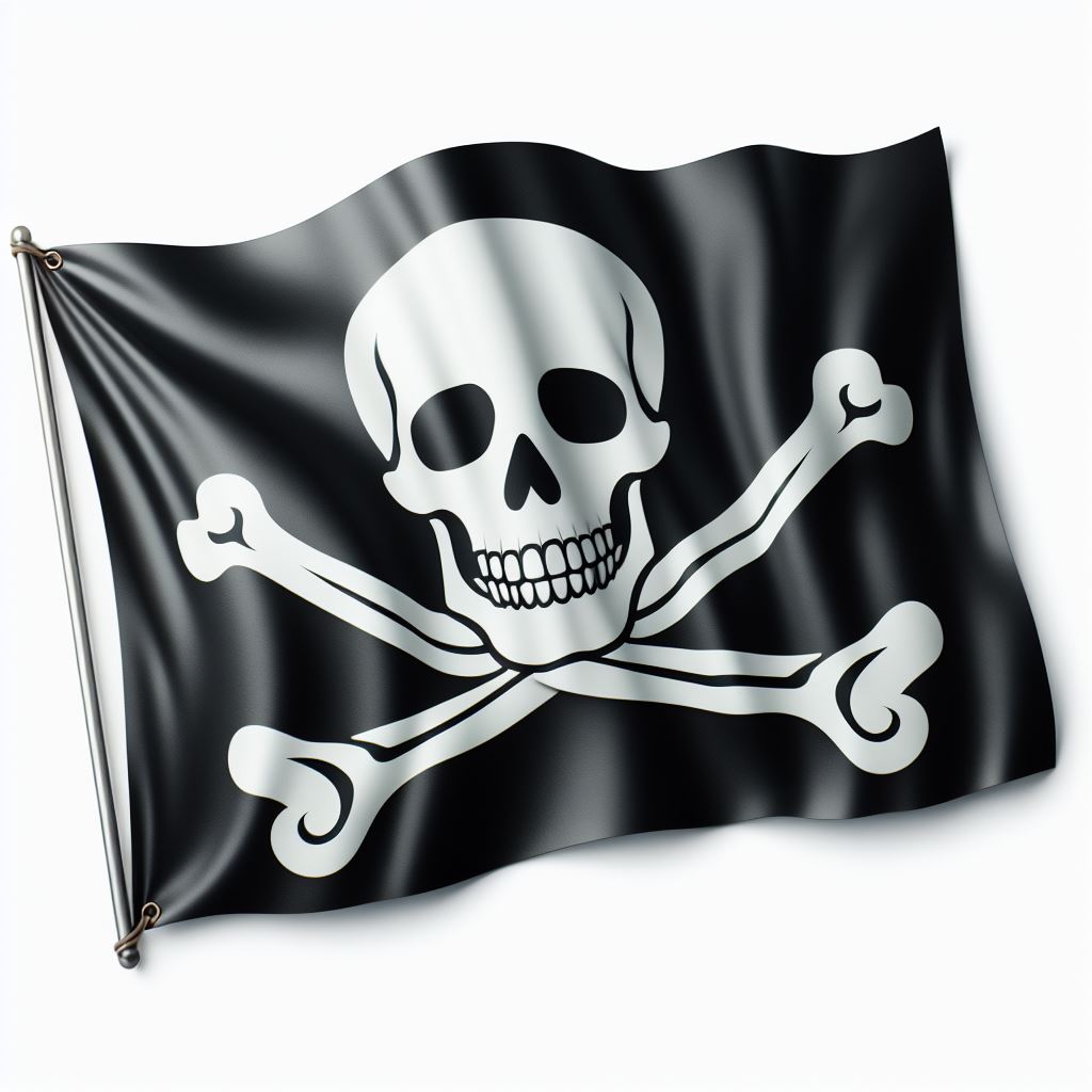 A black pirate flag with a white skull and crossbones is waving in the wind.
