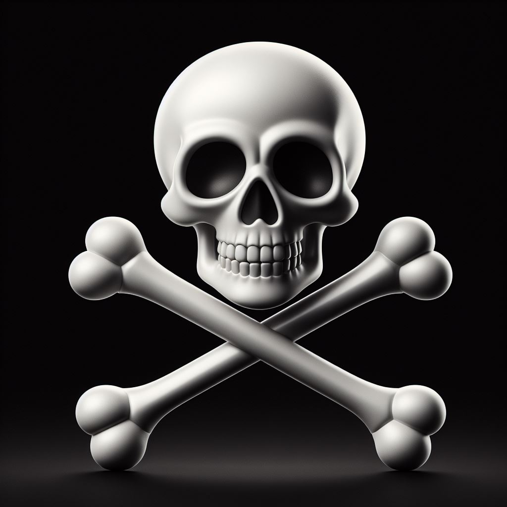 A white skull and crossbones on a black background.
