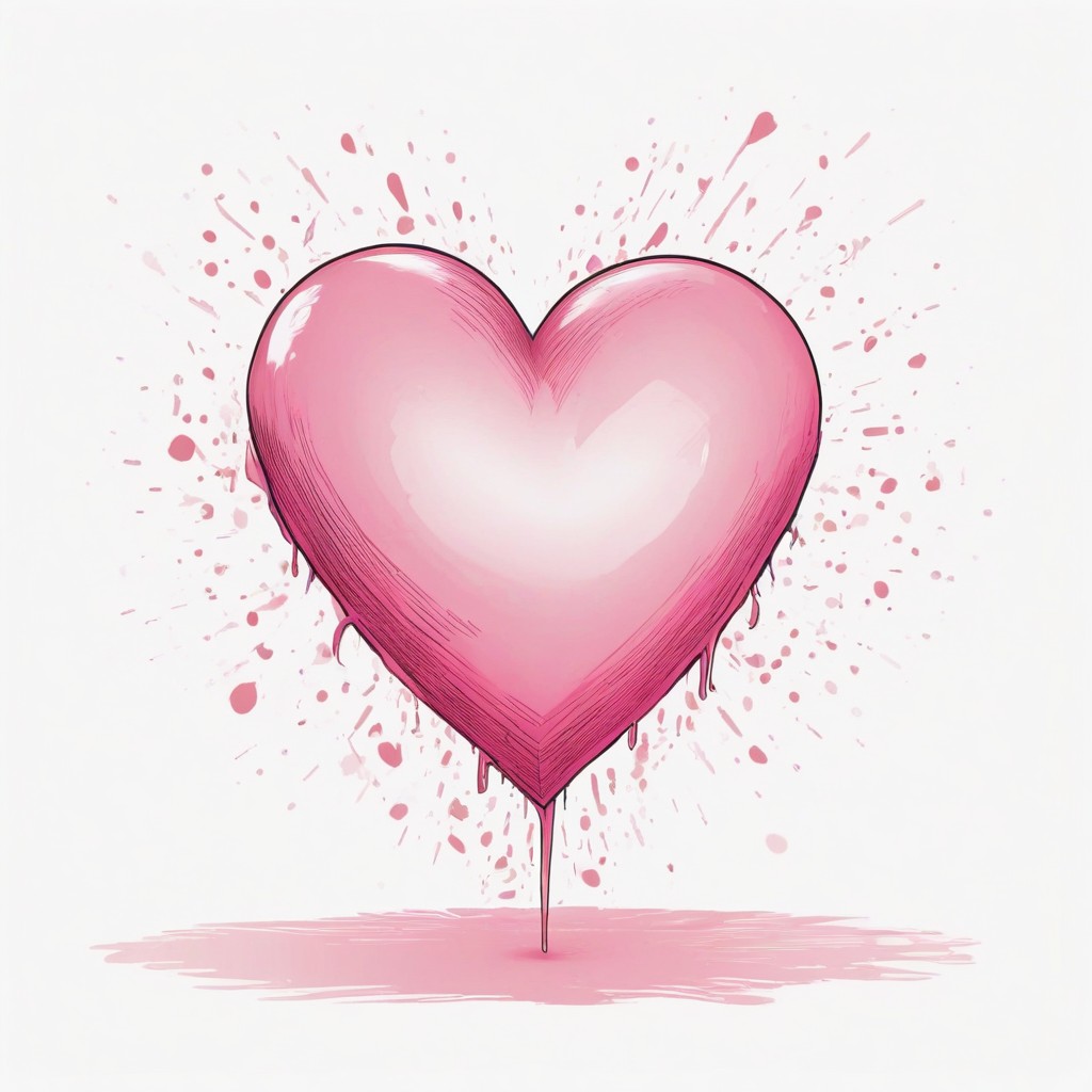 A large pink heart with a dripping effect, surrounded by pink paint splatters.