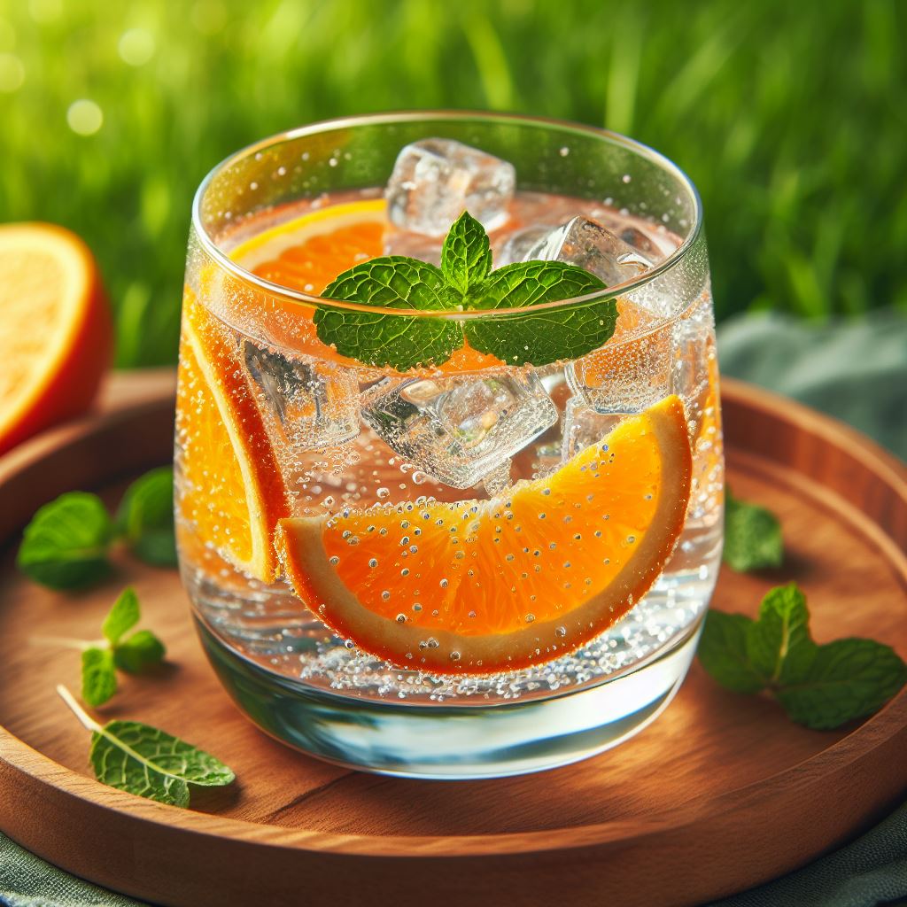 Orange and mint sparkling water drink