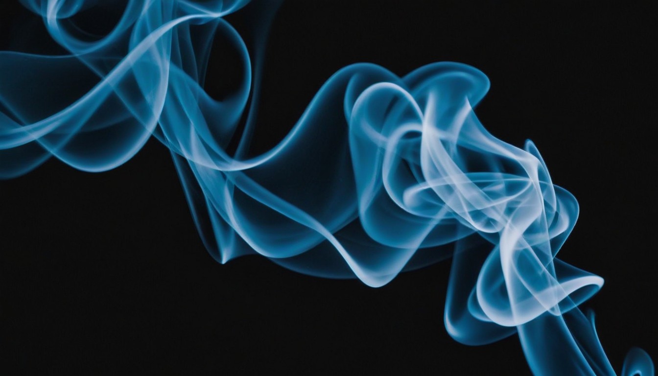 Blue smoke curls and swirls against a black background.