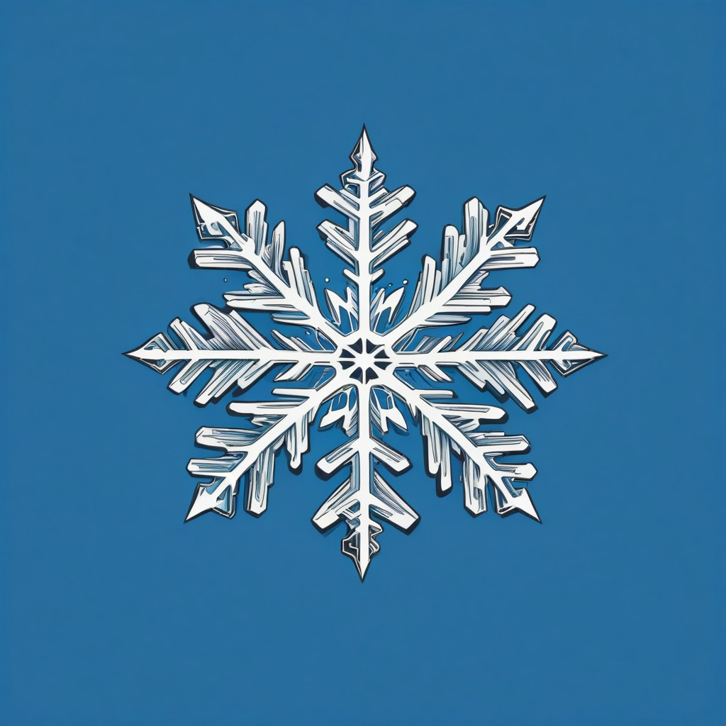 A close-up illustration of a detailed snowflake with six points against a solid blue background.