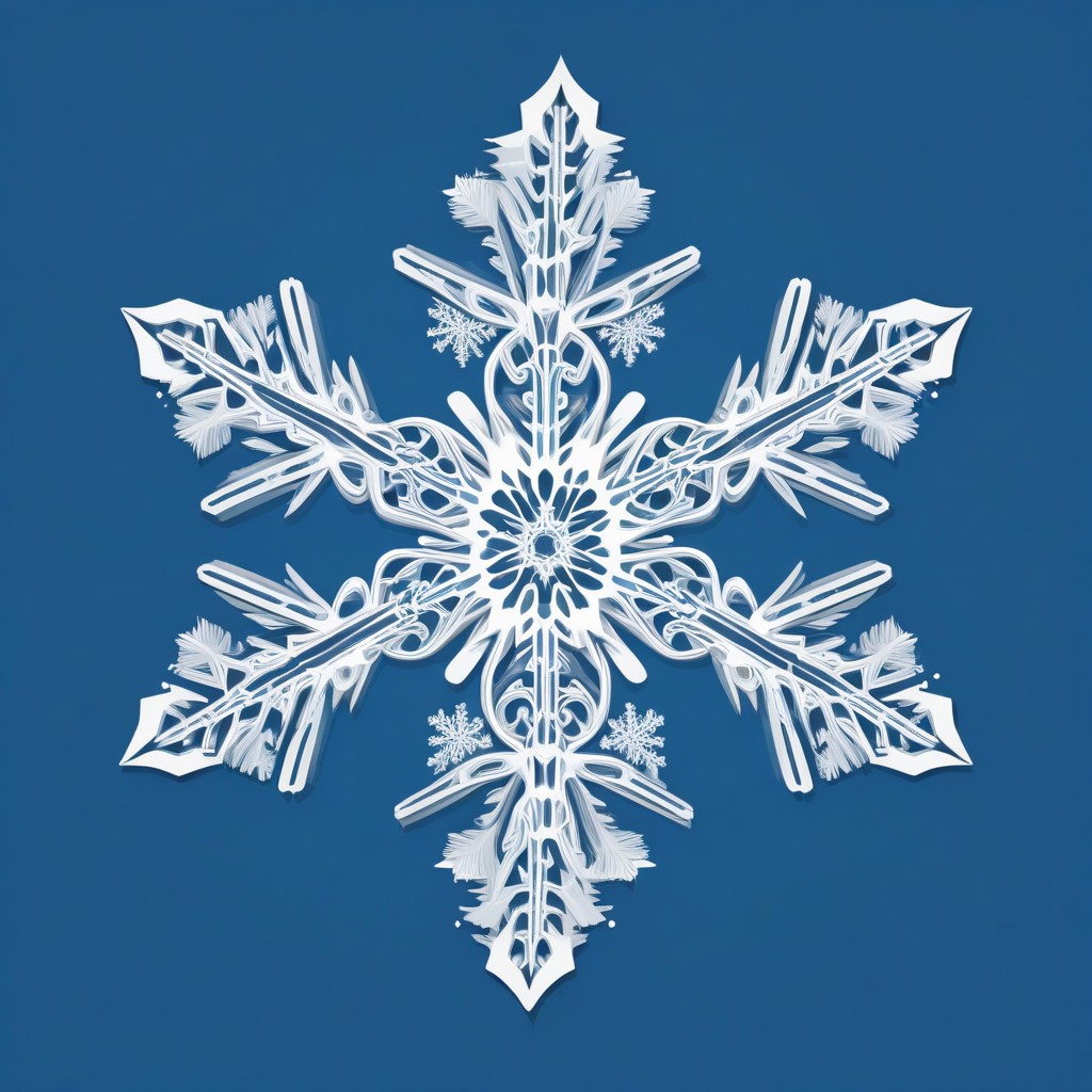 A detailed image of a snowflake with intricate details and six symmetrical arms.