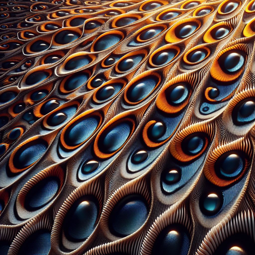 A close-up view of an abstract pattern featuring a series of overlapping, blue and orange circles. The pattern creates a sense of depth and texture.
