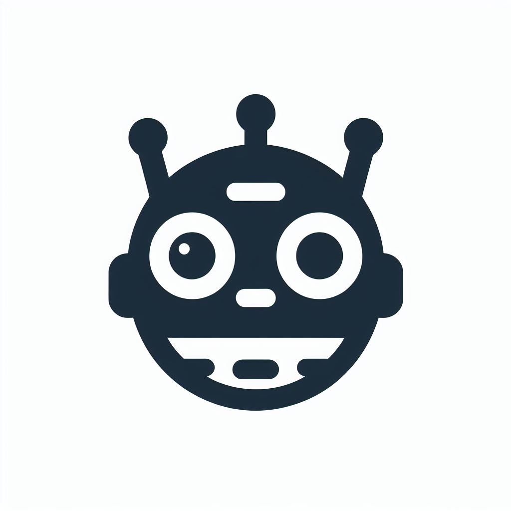 A cartoon robot with large eyes and a happy expression.