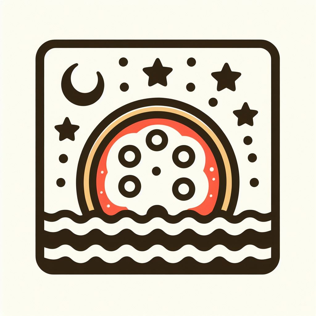 abstract, art, design, film, graphic, horizon, illustration, moon, night, ocean, reel, retro, sea, sky, stars, sunrise, sunset, vintage, water, wave