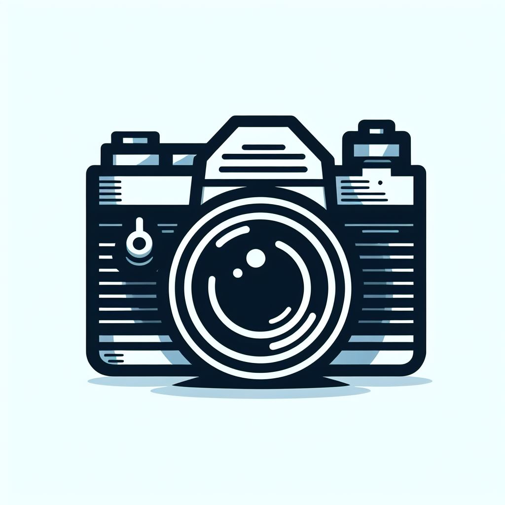 art, background, black, blue, camera, clean, design, digital, drawing, graphic, icon, illustration, lens, minimalist, modern, retro, simple, symbol, vintage, white