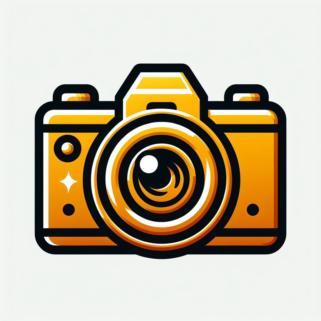 A cartoon illustration of a golden camera, set against a white background.