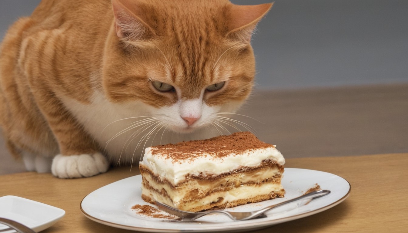 Cat looking at tiramisu