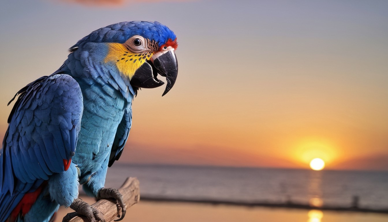 Blue parrot at sunset