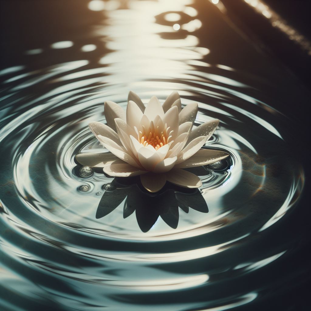aquatic, beauty, bloom, blossom, calm, delicate, flower, green, lily, nature, peace, peaceful, plant, pond, ripple, serenity, soft, tranquility, water, white