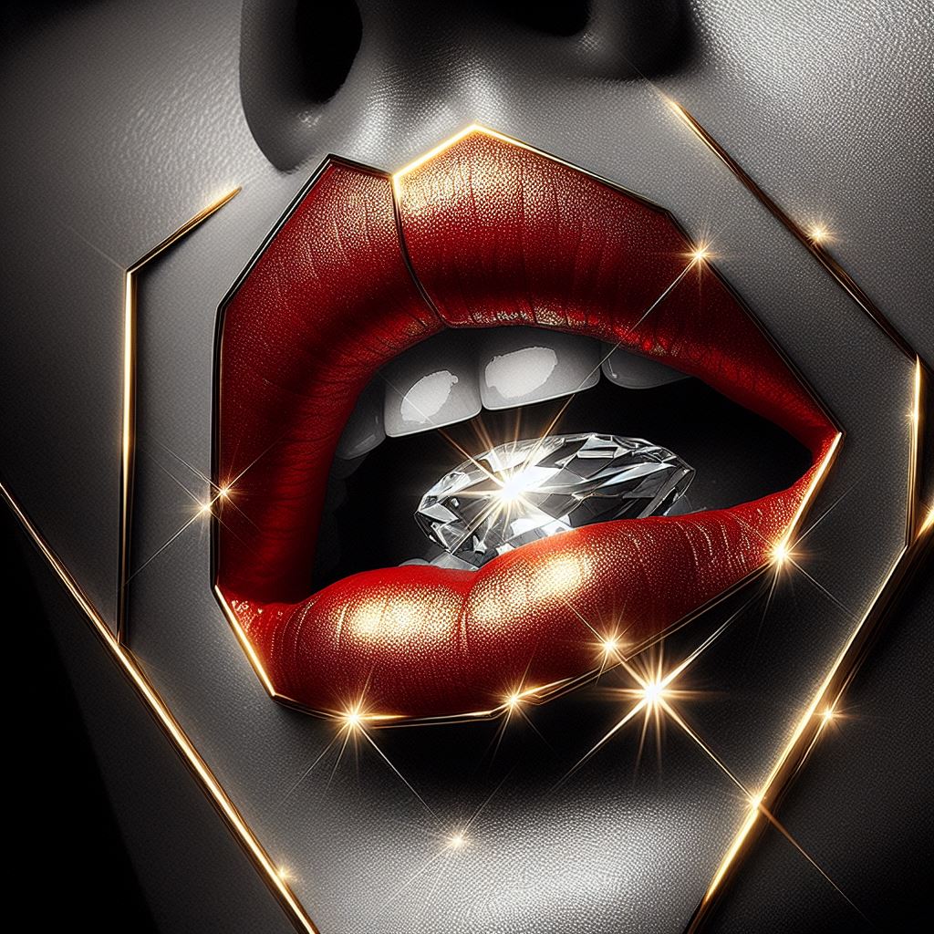 beauty, brilliance, diamond, expensive, fashion, gemstone, glamour, gold, jewelry, light, lips, luxury, mouth, precious, red, shine, sparkle, teeth, wealth, woman