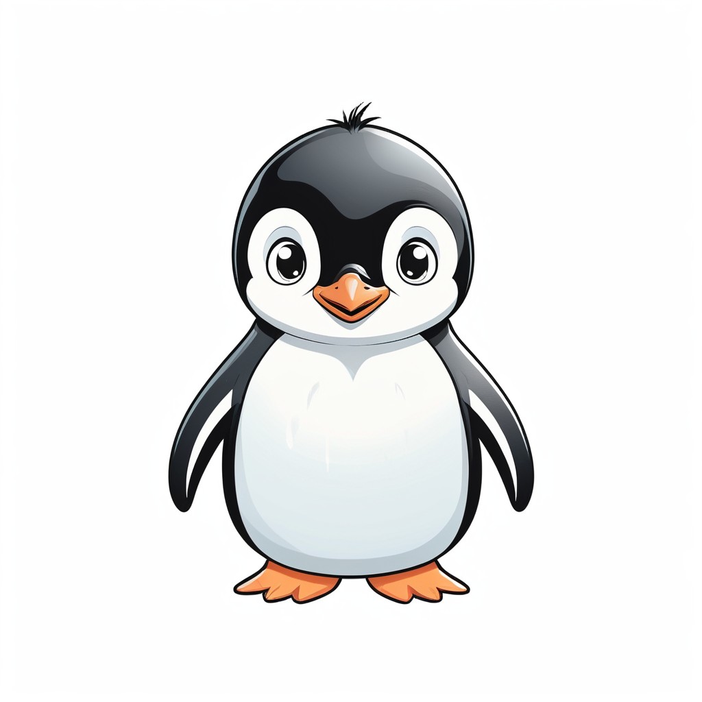 A cartoon penguin with black and white feathers and orange feet, with a big smile on its face.