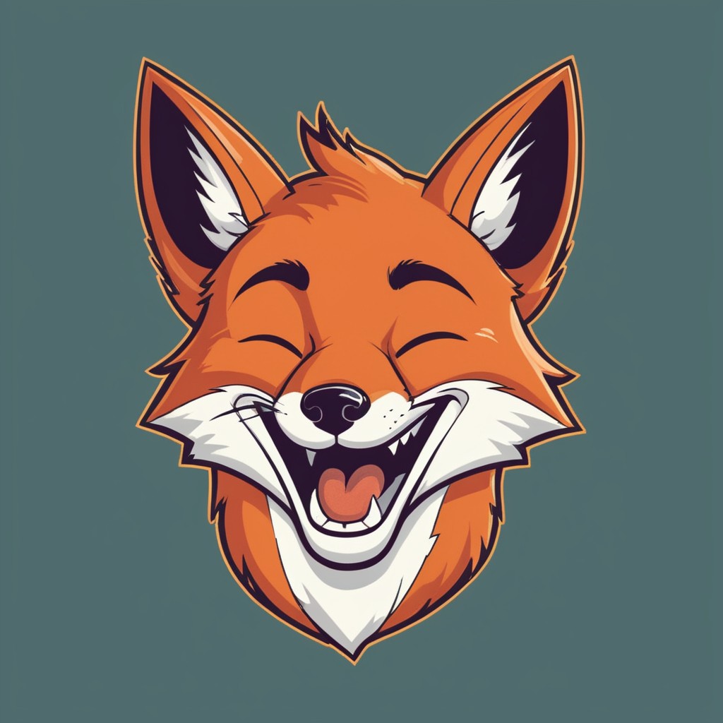A cartoon fox with orange fur and a big smile, eyes closed, and teeth showing.