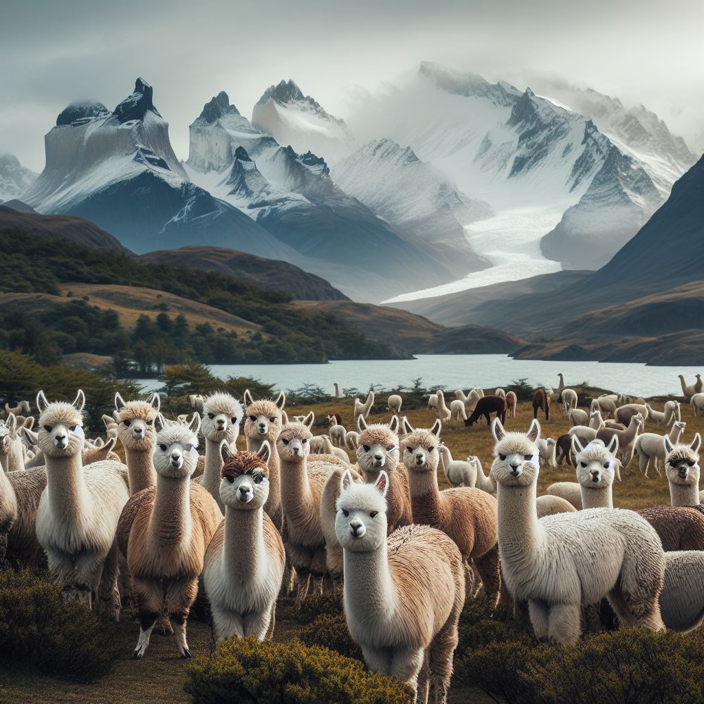 adventure, alpaca, america, andes, animal, chile, fauna, field, herd, lake, landscape, mountains, nature, outdoor, patagonia, scenic, south, travel, vacation, wildlife