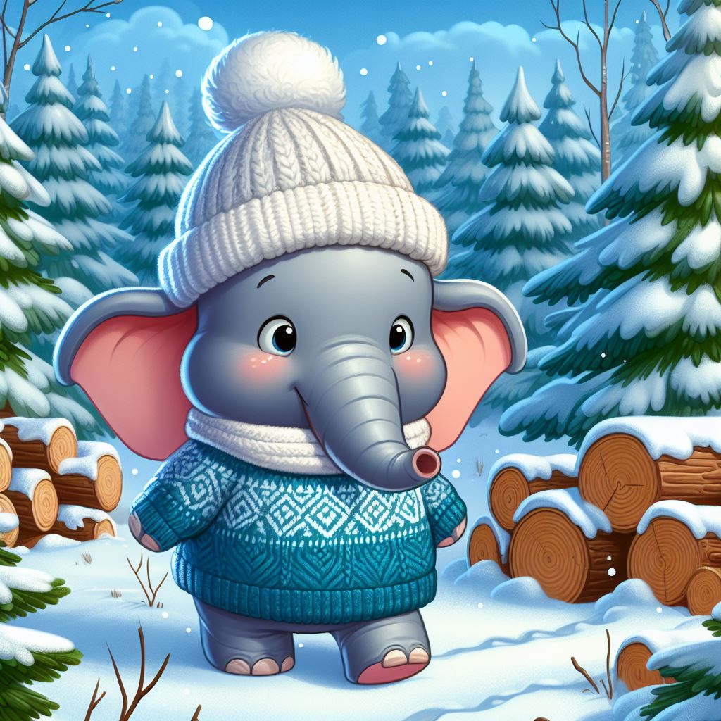 animal, animals, baby, christmas, cold, cute, december, elephant, forest, frost, hat, holiday, nature, pine, season, snow, sweater, trees, winter, woodland