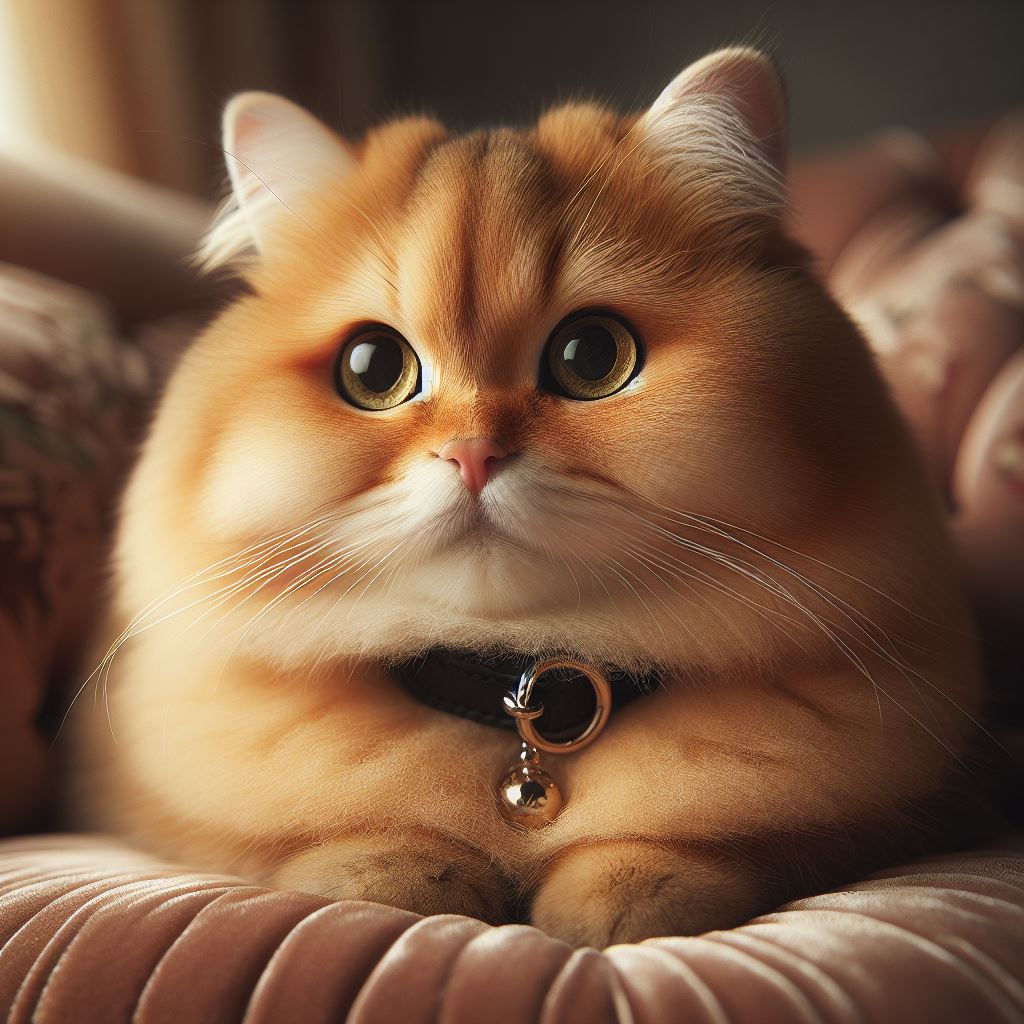 adorable, animal, bell, big, brown, cat, collar, couch, cute, domestic, eyes, feline, fluffy, furry, golden, orange, pet, sitting, soft, white