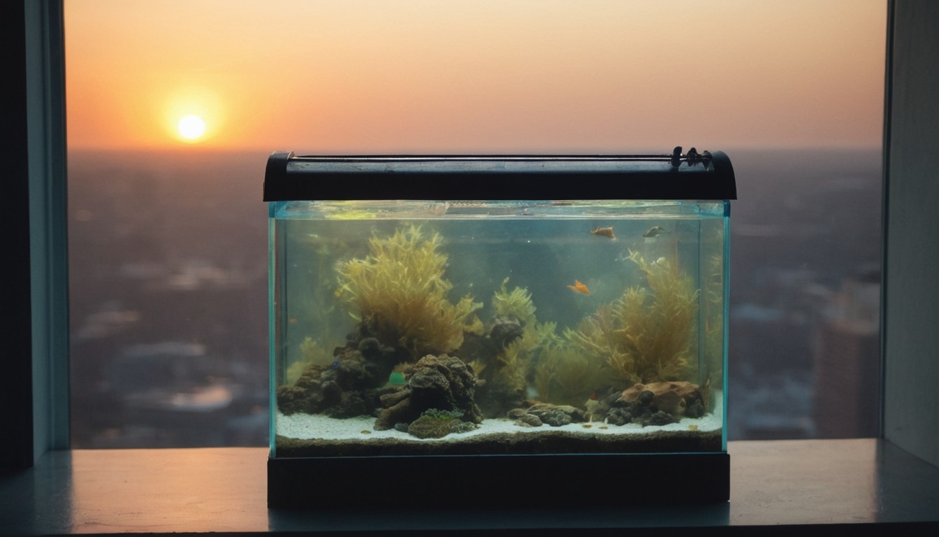 Fish tank at sunset