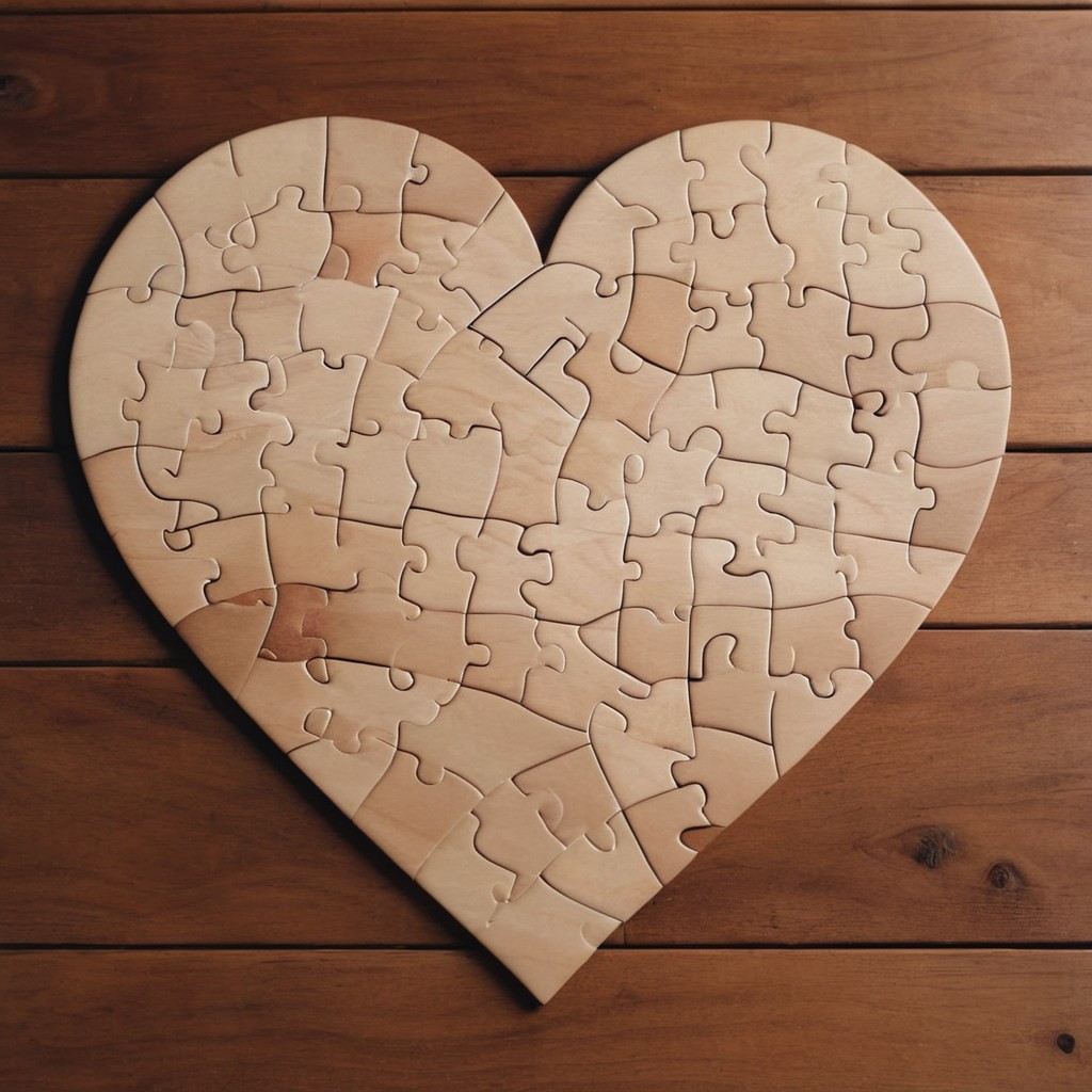 activity, assemble, brown, challenge, craft, decor, floor, game, heart, heart-shaped, home, jigsaw, love, piece, pieces, puzzle, shape, tabletop, wood, wooden