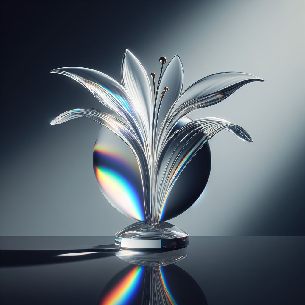 abstract, art, crystal, decor, decorative, design, flower, glass, iridescent, light, modern, object, ornament, rainbow, reflection, sculpture, shadow, still, surface, tabletop