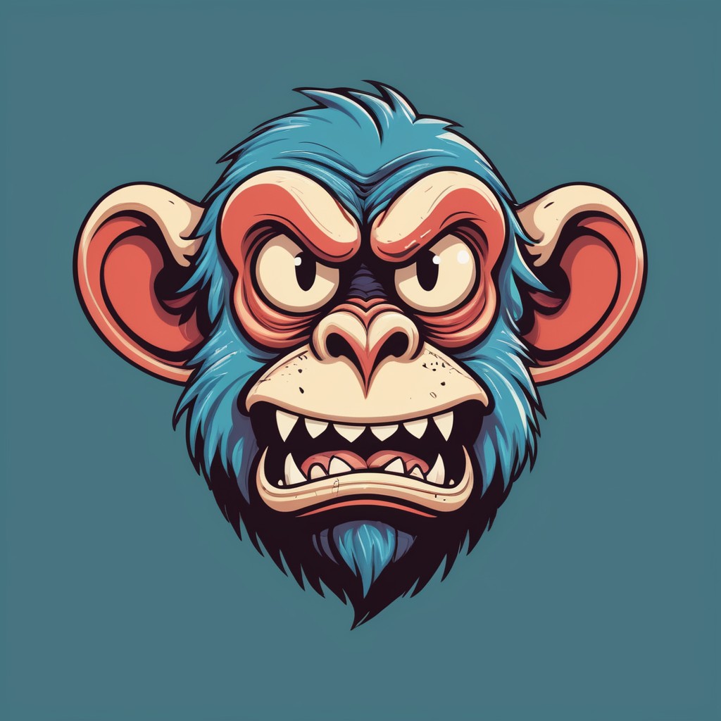 angry, animal, art, blue, cartoon, character, design, digital, ears, expression, funny, fur, graphic, illustration, mascot, monkey, primate, red, teeth, vector