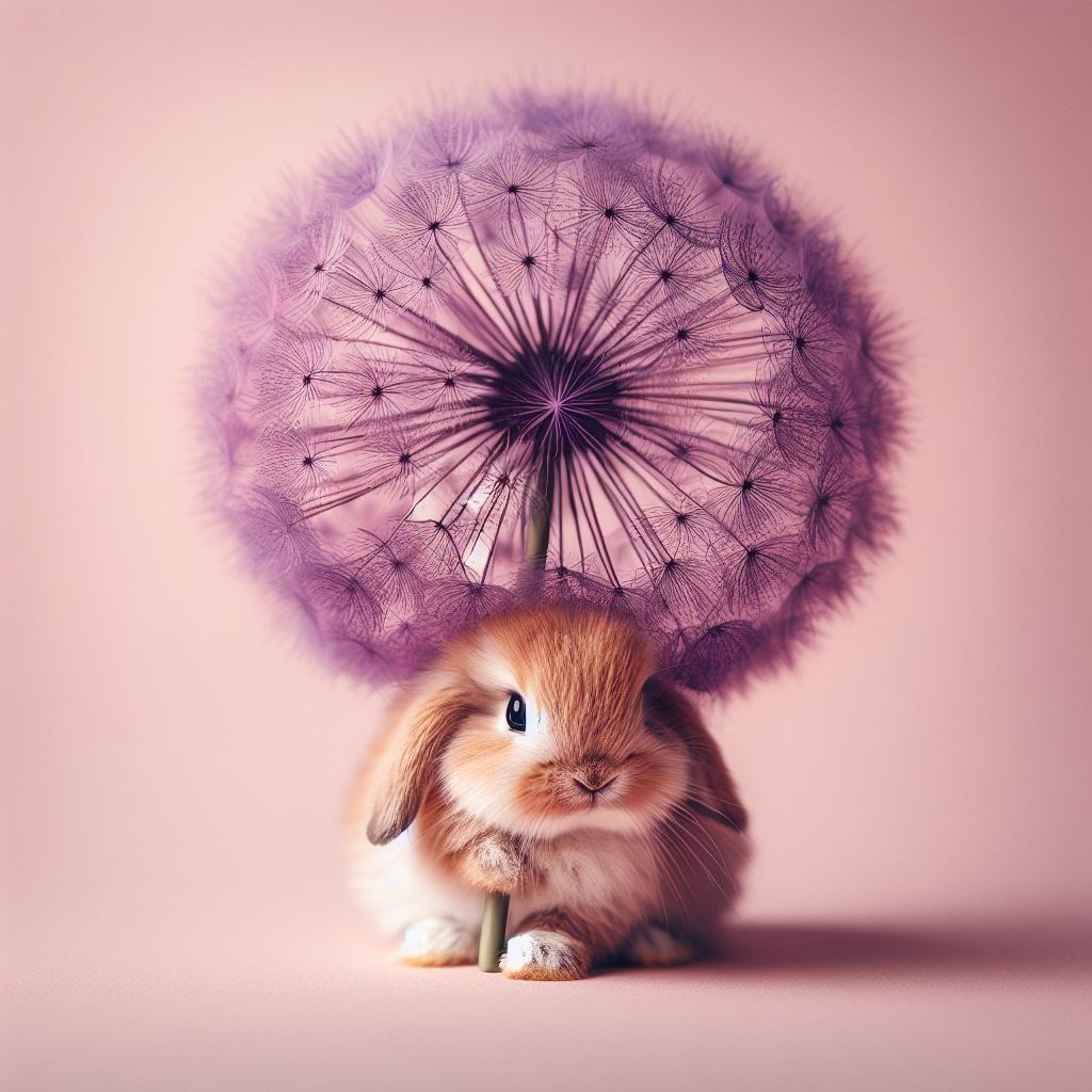Bunny under dandelion umbrella