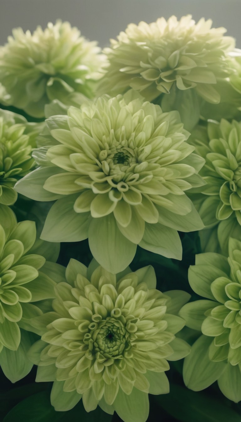 A close-up of a bouquet of green dahlias. The flowers are in full bloom and have a soft, delicate appearance.