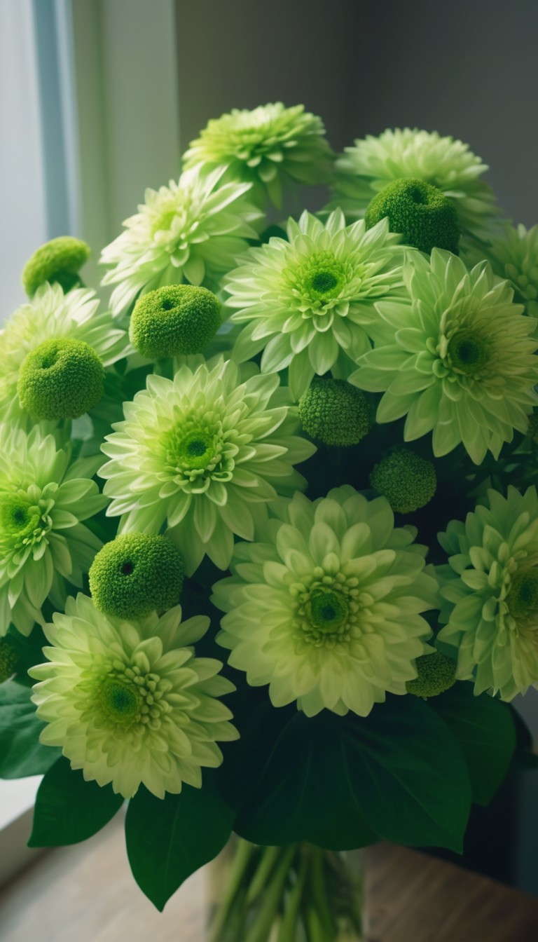 Green chrysanthemum bouquet in a vase