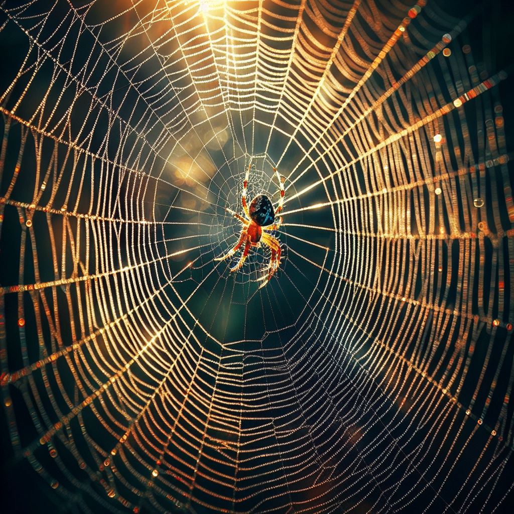 animal, arachnid, beauty, close-up, delicate, dew, evening, golden, insect, intricate, light, macro, morning, nature, outdoors, pattern, spider, sunset, web, wildlife