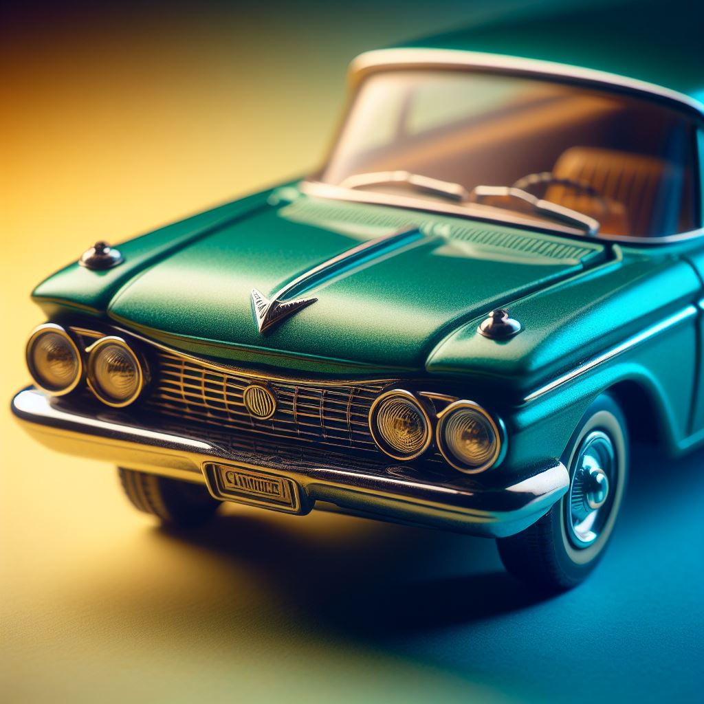 A close-up shot of a vintage green car's front end, showcasing its chrome details and sleek design.