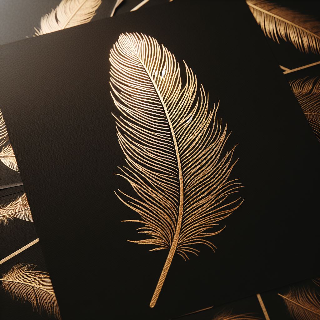 Gold feather on black paper