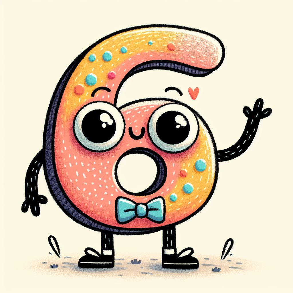 bakery, blue, bowtie, cartoon, character, cheerful, cute, dessert, digit, donut, food, friendly, happy, illustration, number, six, smiling, sprinkles, sweet, whimsical