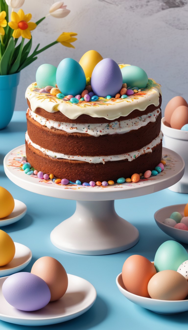 background, baking, blue, cake, candy, celebration, decorating, delicious, dessert, easter, eggs, festive, frosting, holiday, party, spring, sweet, treat, white, yummy