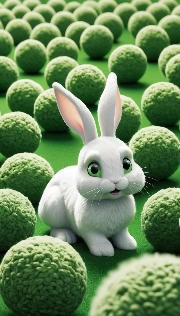 White rabbit among green balls