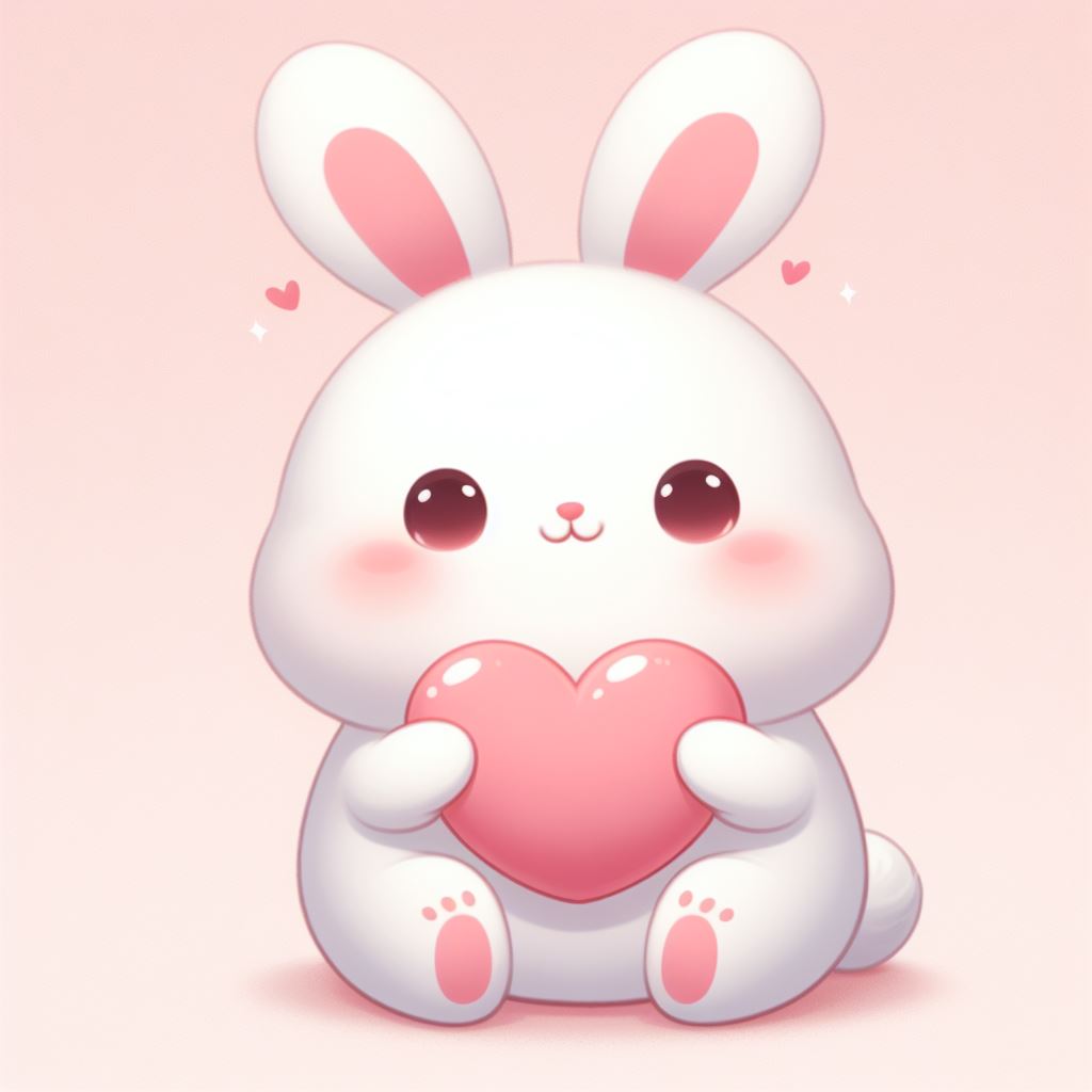 adorable, animal, bunny, care, cartoon, cuddly, cute, fluffy, friendship, happy, heart, hug, illustration, kawaii, love, pink, smile, soft, sweet, white