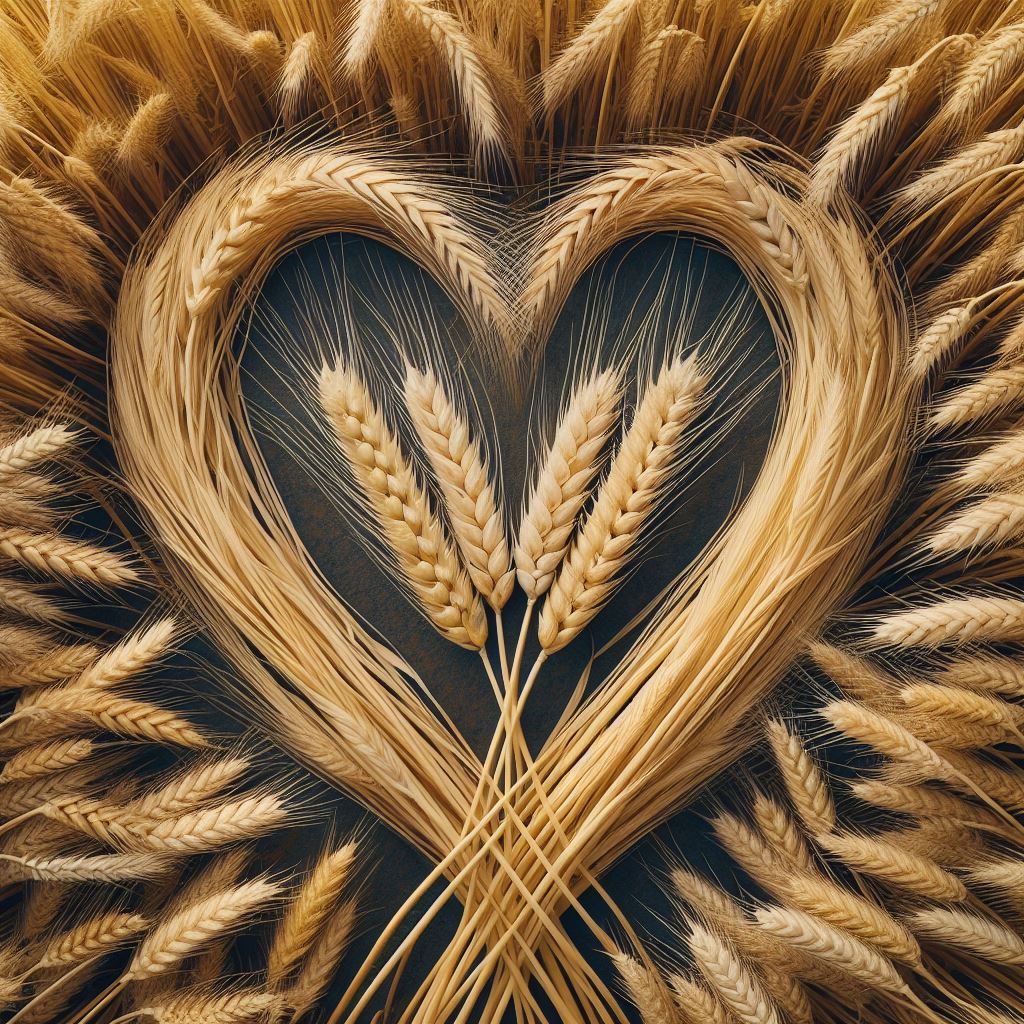 agriculture, background, bread, cereal, farm, field, food, golden, grain, harvest, heart, love, nature, organic, rural, season, shape, stalks, summer, wheat