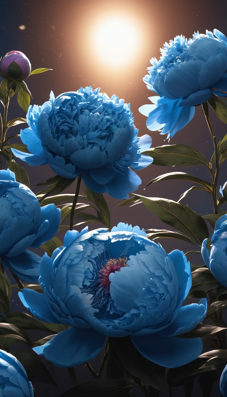 Blue peonies under moonlight