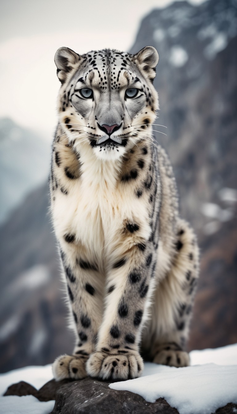 animal, big, cat, claws, cold, eyes, fierce, fur, leopard, majestic, mammal, mountain, nature, paws, predator, rock, snow, wild, wildlife, winter