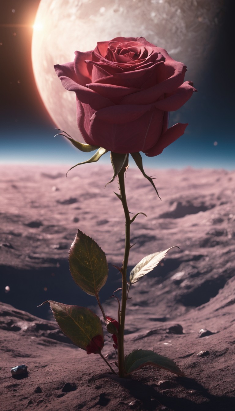 Rose blooming on lunar surface