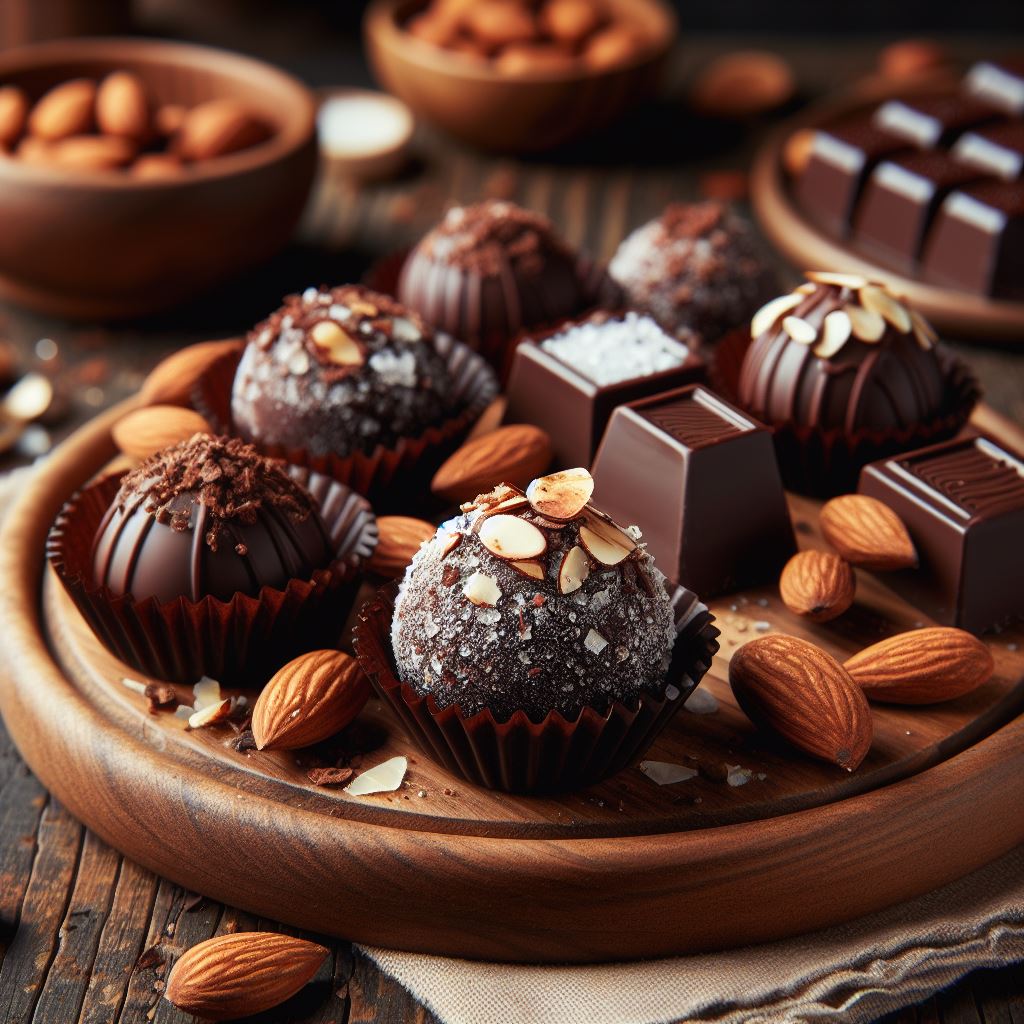 Chocolate truffles with almonds