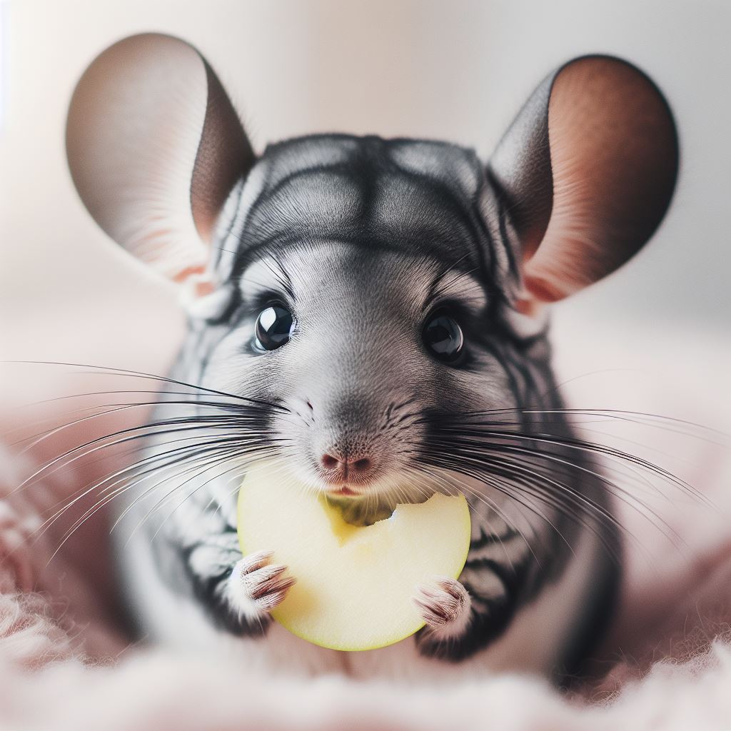 Chinchilla eating apple slice
