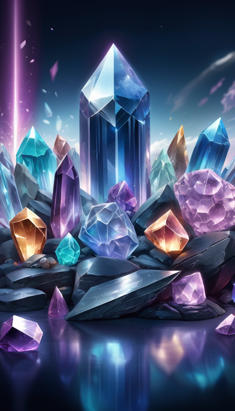 abstract, art, blue, colorful, crystals, fantasy, formation, gemstone, green, illustration, light, magical, mineral, orange, purple, reflection, rock, shine, sparkle, surface