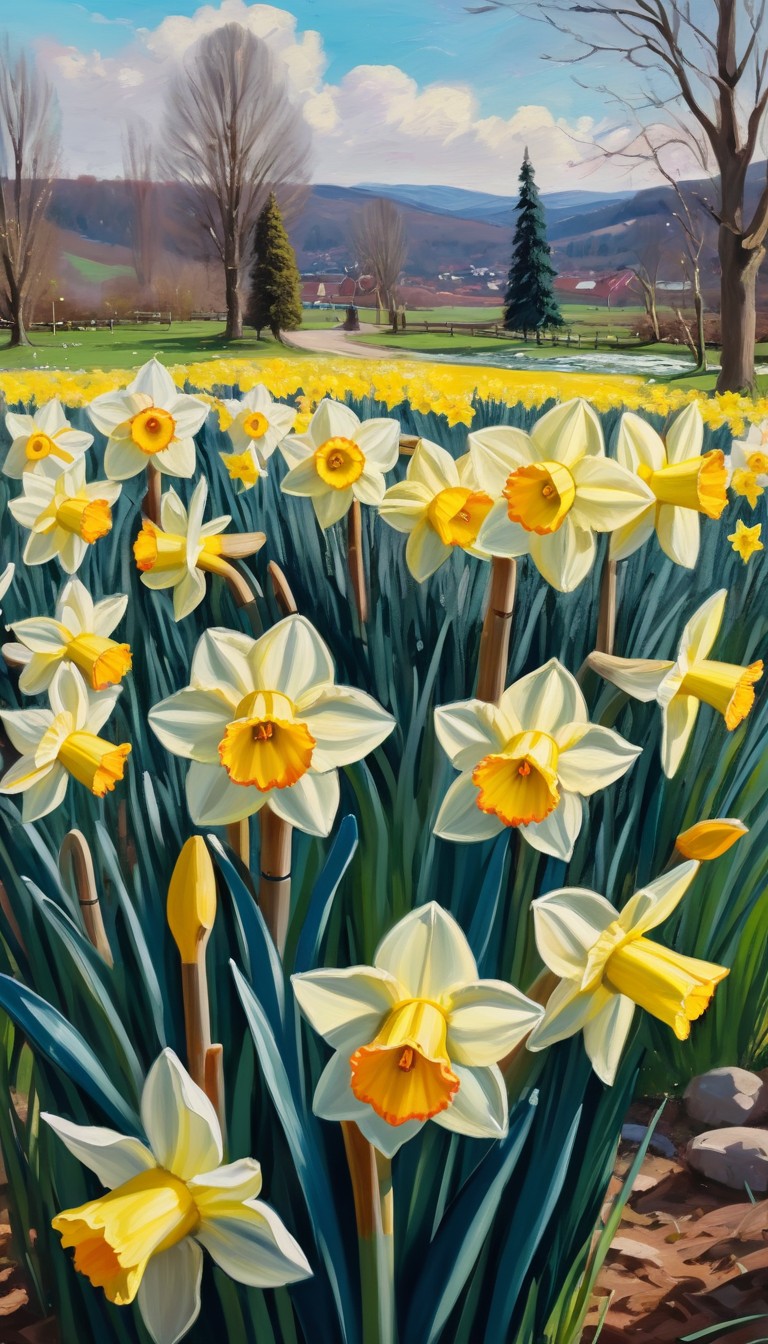 Spring daffodils in a valley