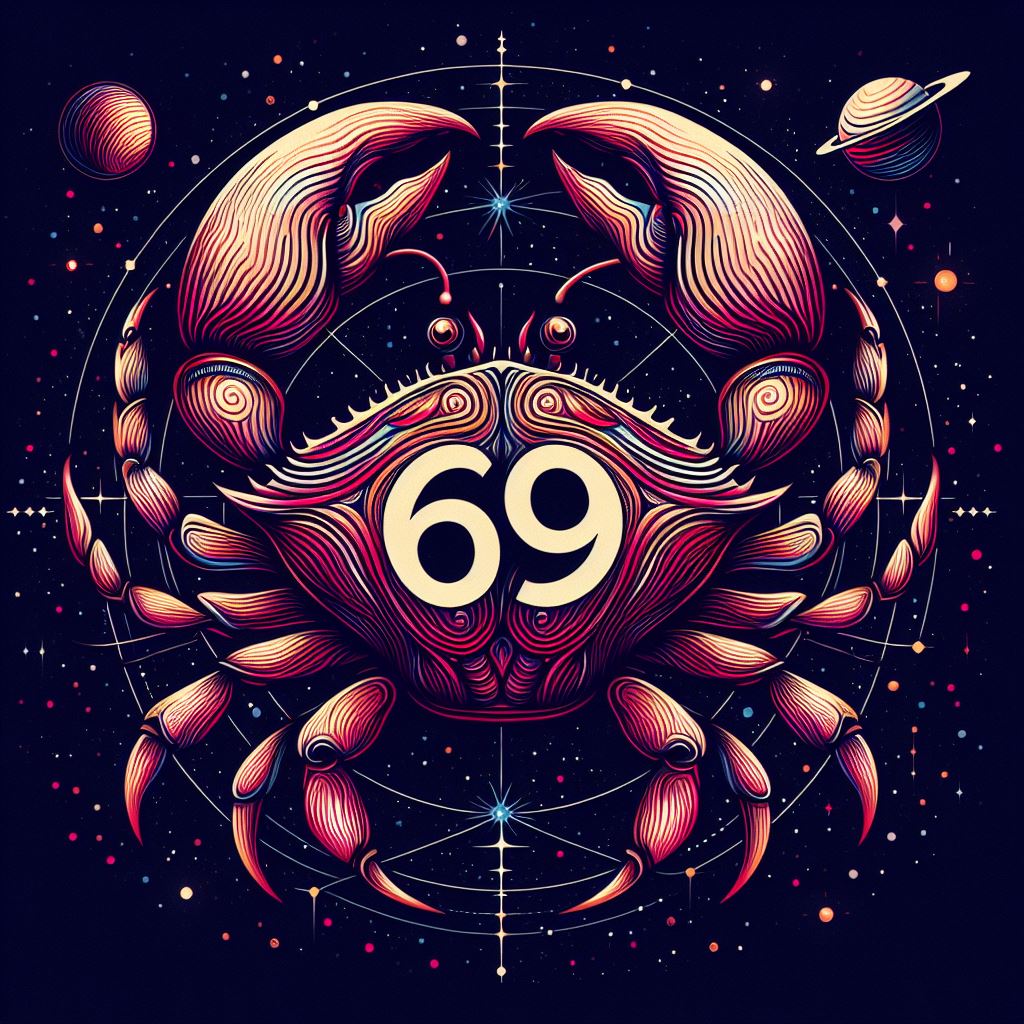 Cancer zodiac symbol with number 69